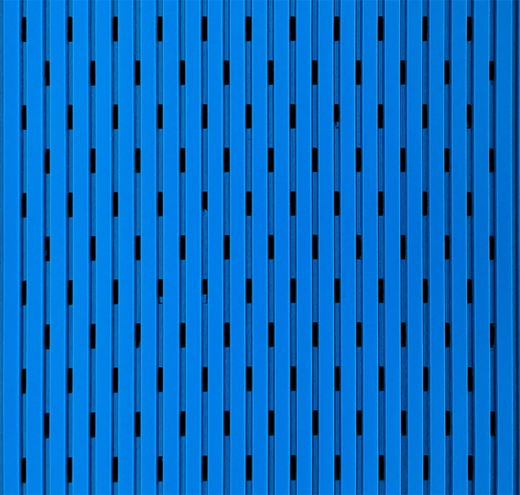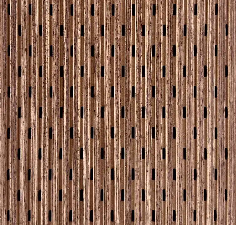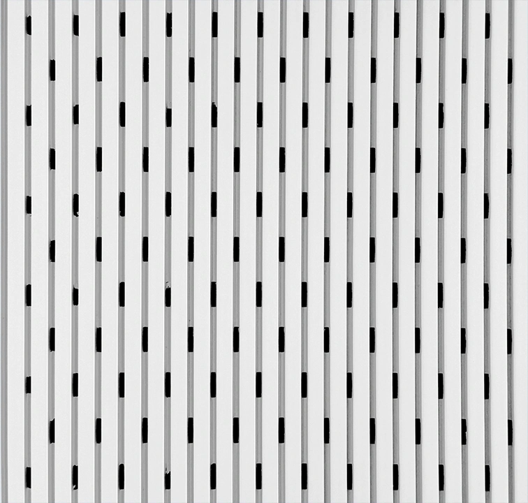 The grooved veneer surface, perforated core material, and black fiberglass mat at the rear combine to create a substantial acoustic performance of up to NRC of 0.95 enhanced by introducing an extra layer of sound absorptive fiberglass as a substrate material.